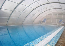 Застекленная терраса с видом на море. На террасе раскладной диван, журнальный стол, телевизор, цветы, выход во двор к крытому бассейну. В летнее время покрытие с бассейна снимают.